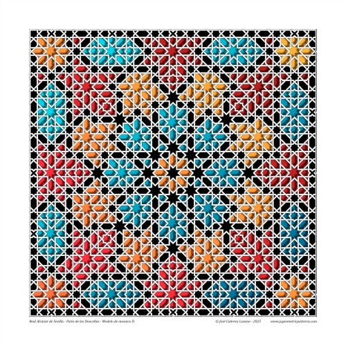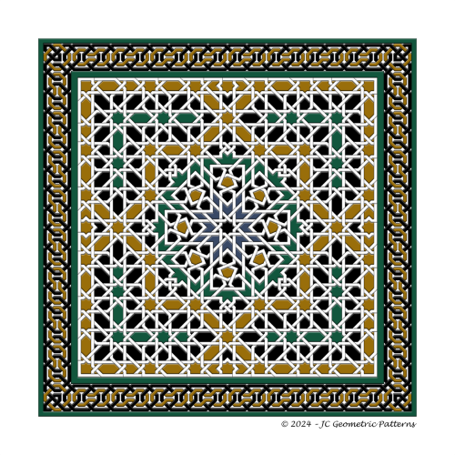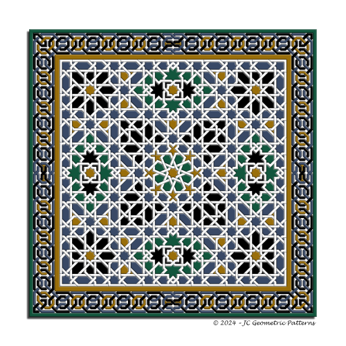 Modelo basado en el zócalo alicatado presente en el Mexuar de la Alhambra de Granada, en España.