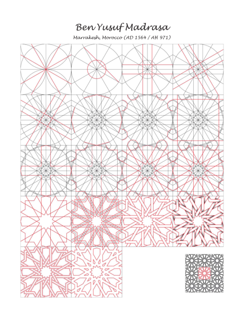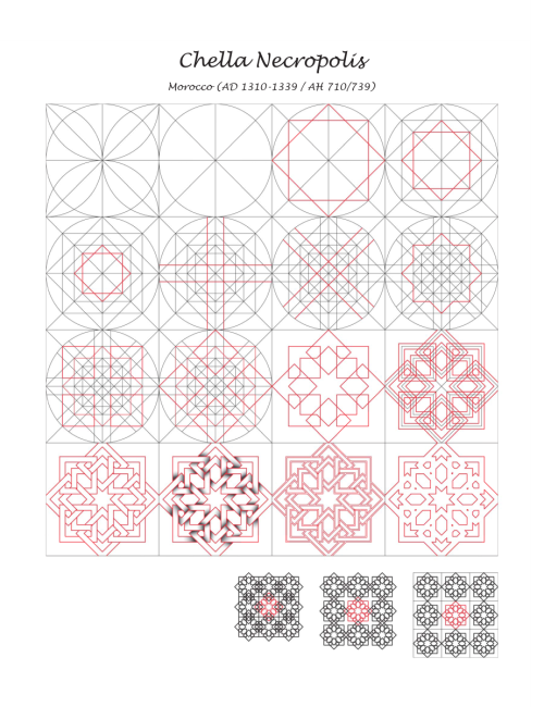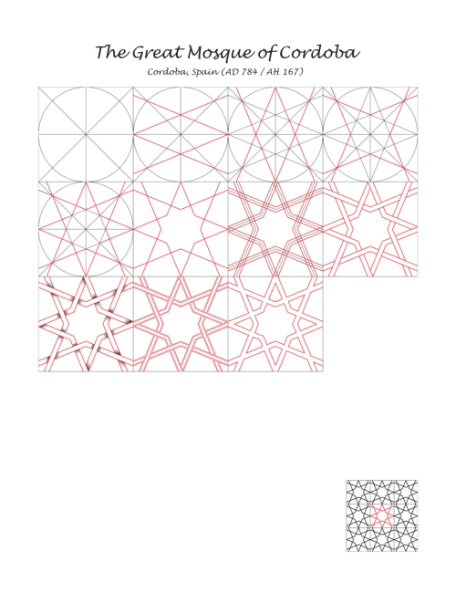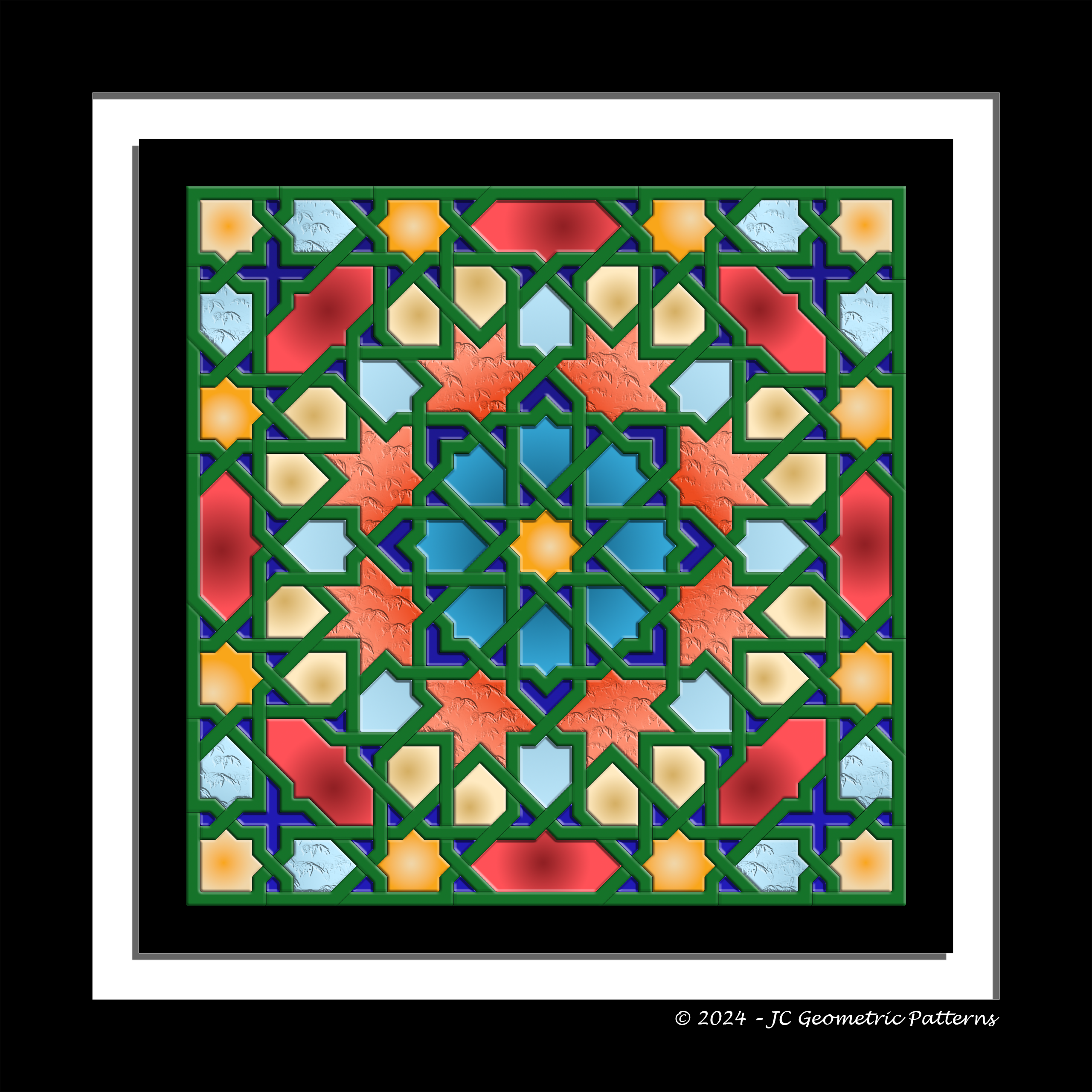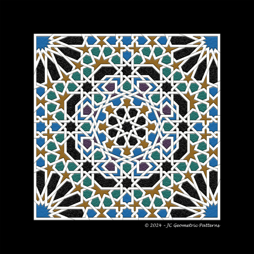 Modelo basado en uno de los motivos que aparecen en las yeserías que recubren los muros de la Sala de las Dos Hermanas en la Alhambra de Granada, en España.