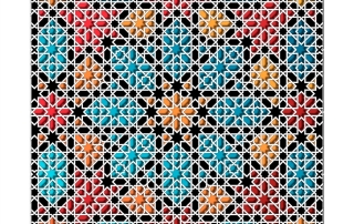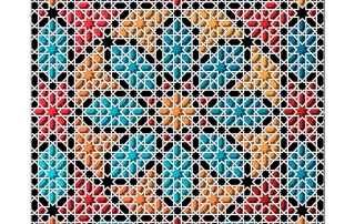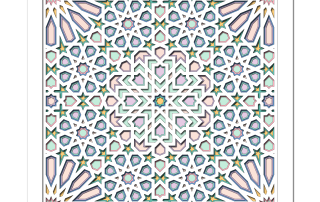 Modelo basado en uno de los motivos que aparecen en las yeserías que recubren los muros de la Sala de las Dos Hermanas en la Alhambra de Granada, en España. [...]